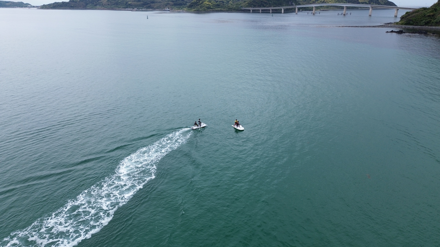 夏季の角島大橋周辺海域では、海水浴を楽しんでいる子ども・素潜り漁を行っている漁業従事者・水上バイカーなど多様な水辺の愛好家が存在します。これらの愛好家たちのように海を訪れる全ての人々の安全安心を担保し共存するための解決策の一つが私たちの取り組んでいる「 JM-Safety」です。